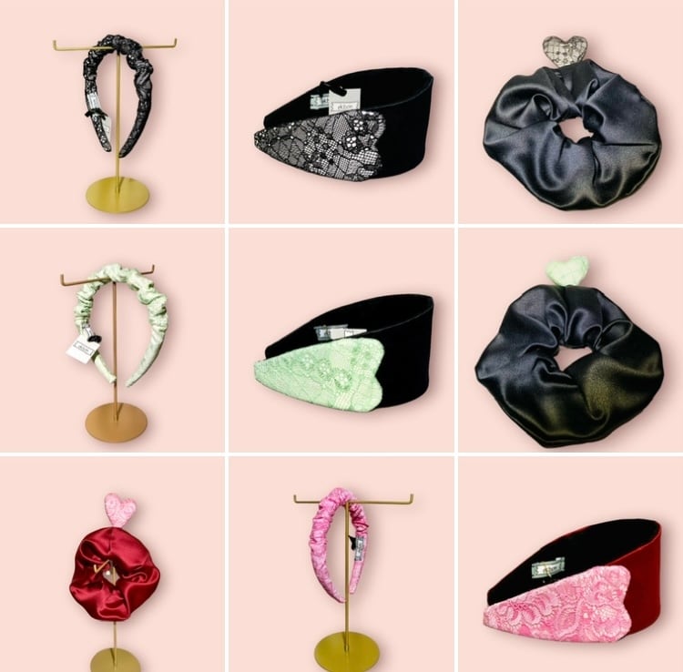 【スカーフ カチューシャ ブリジット】レース〈黒×ベージュピンク〉