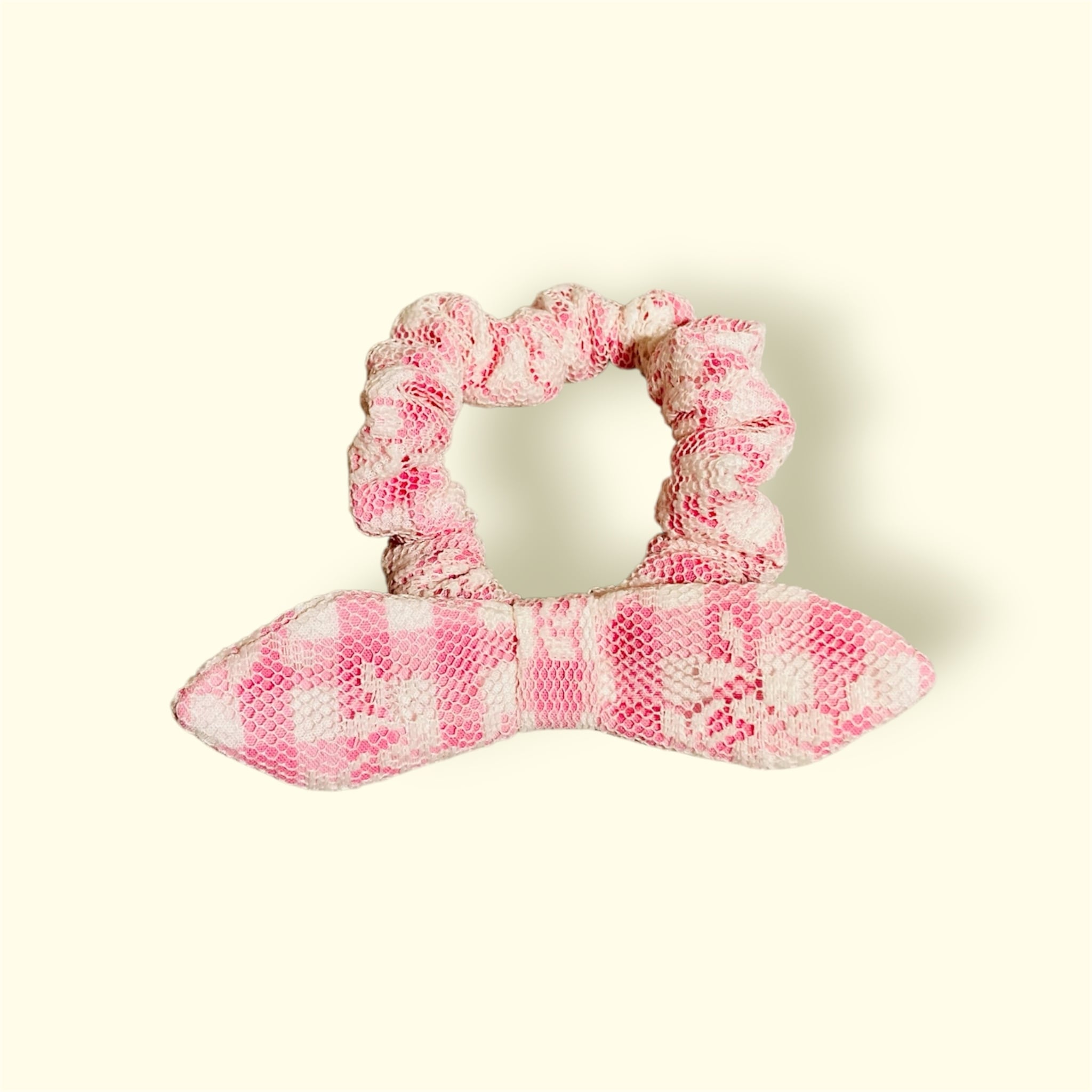 【シュシュ リトル ボウ】ギンガムチェック×レース〈ピンク〉