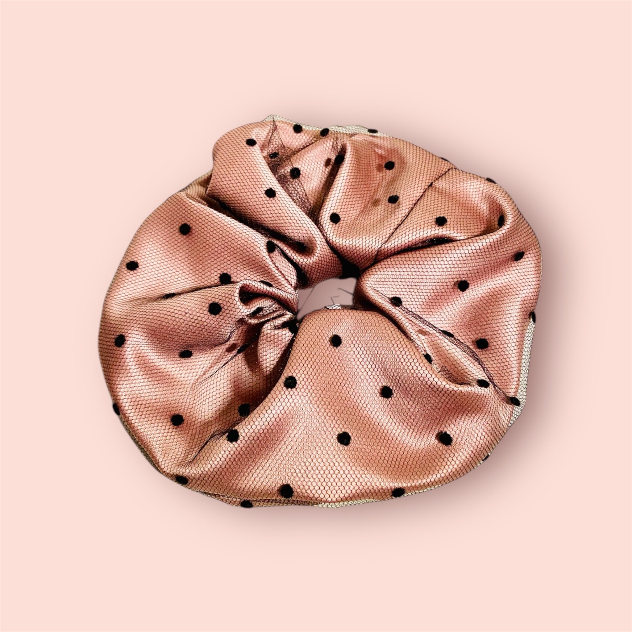 【シュシュ】サテン ドット柄 チュール〈ピンクベージュ×黒〉